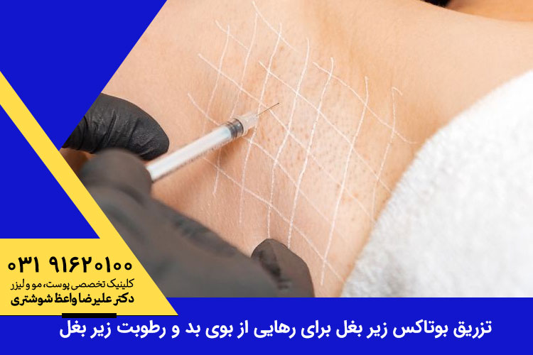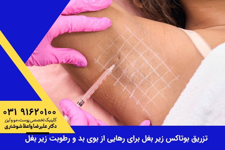 تزریق بوتاکس تعریق توسط پزشک متخصص | هزینه بوتاکس تعریق در اصفهانبوتاکس تعریق راهی برای درمان تعریق بیش از حد زیر بغل و کف دست و پا.نتیجه سریع ایمن و ماندگاری بالا با تزریق بوتاکس تعریق در اصفهان در کلینیک دکتر واعظ ...